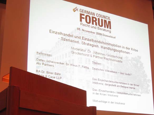 Beschreibung: Unser alljährliches Forum Recht und Beratung hat am 5. November 2009 in Düsseldorf stattgefunden. Hier finden Sie einige Bilder.